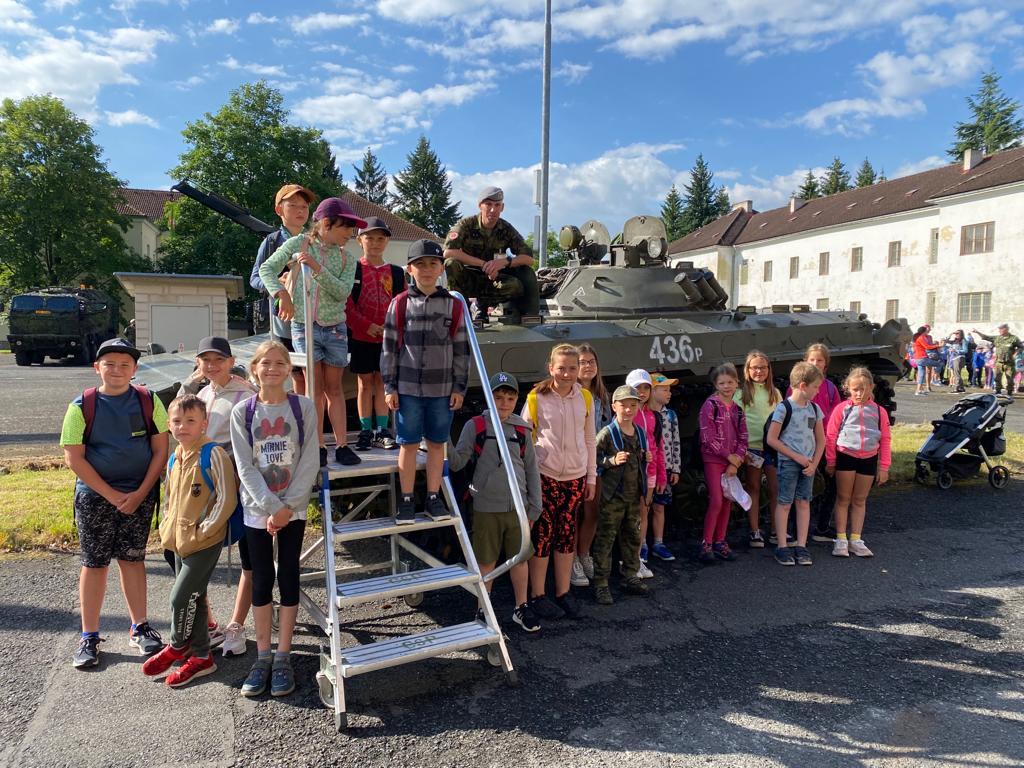 Poslední středu (28.6.2023)tohoto školního roku jsme zavítali s žáky do Dragounských kasáren v Klatovech. Zde byl připravený program pro veřejnost nazvaný Den otevřených dveří 142. praporu oprav. K vidění zde bylo mnoho vojenské a hasičské techniky, zásahy vojenských jednotek, hledání vystřelené munice, soutěže a prohlídky různých typů armádních vozidel. Nechybělo ani občerstvení, sladké odměny a drobné reklamní dárečky