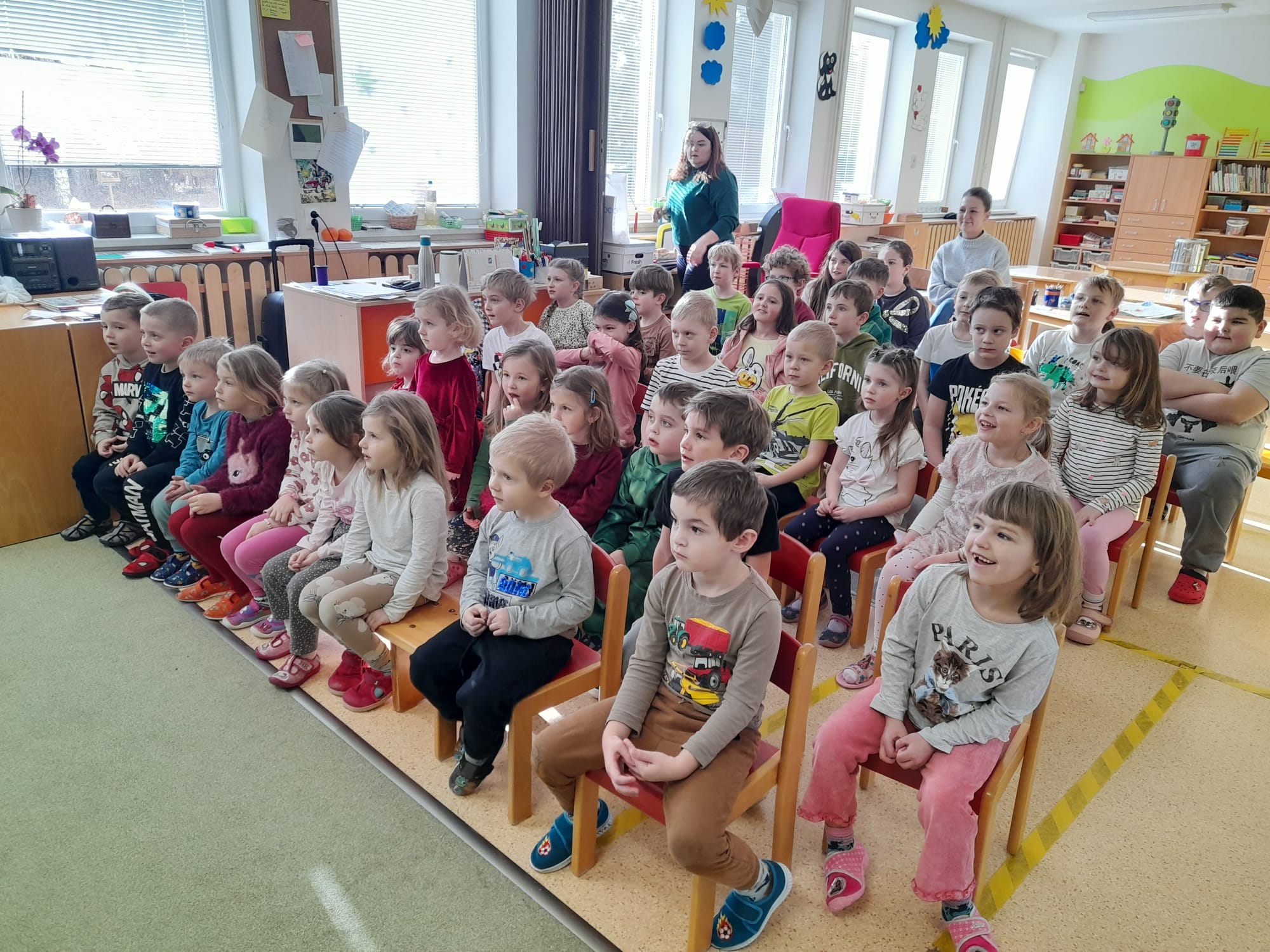 Jaro, léto, podzim, zima, čas jak řeka plyne s nima. Venku nám stále kraluje zima, a než předá své ledové žezlo jaru, ještě chvíli to potrvá. Do MŠ dorazilo 27.1. 2026  „Divadlo Letadlo“. Žáci ZŠ i děti z MŠ si užili nejen zábavnou podívanou, dokonce se do celého představení zapojili. Během chvíle prožili Vánoce, Silvestr, masopust, ale i stavění sněhuláka, koulování a jiné zimní radovánky.