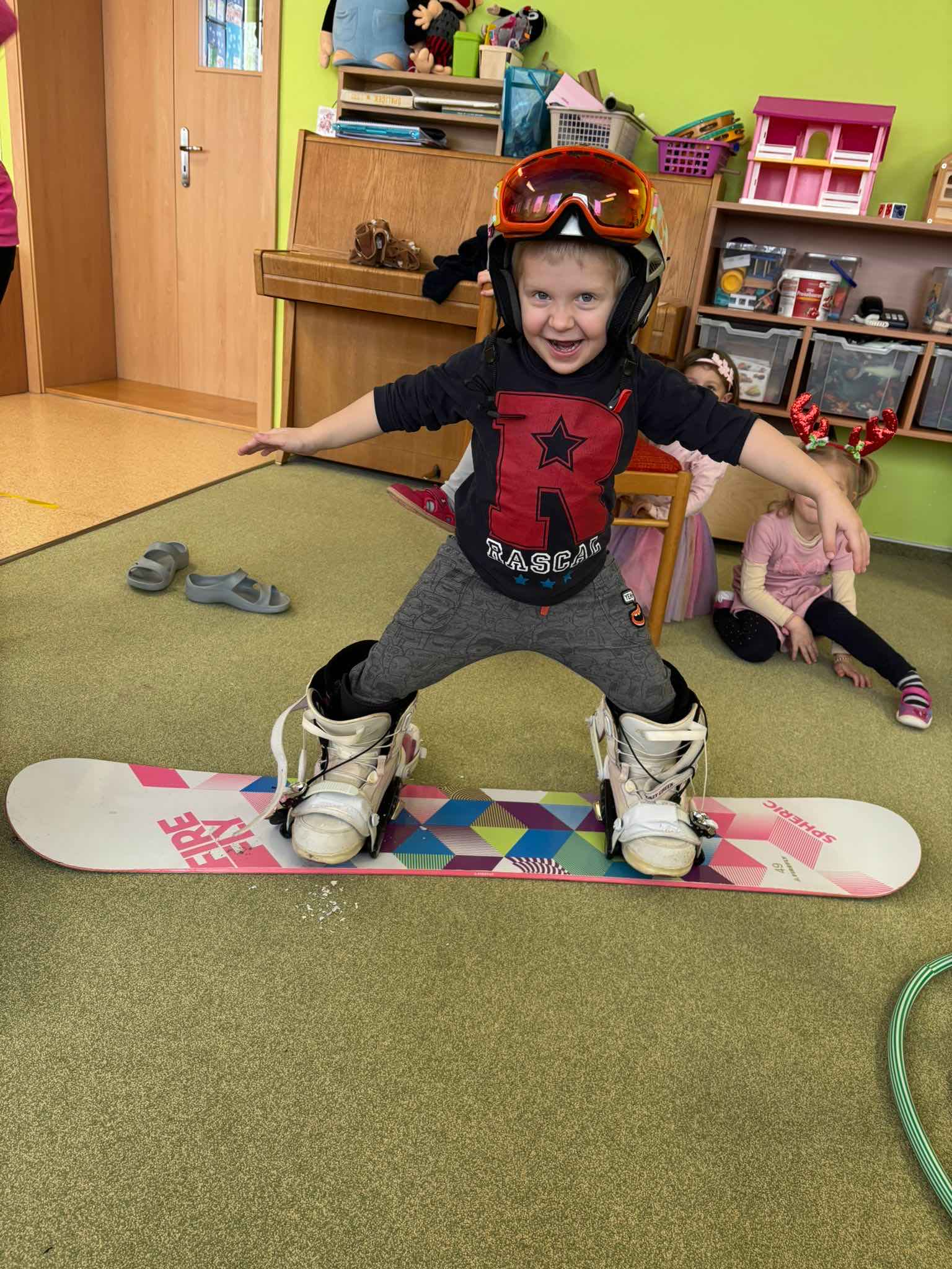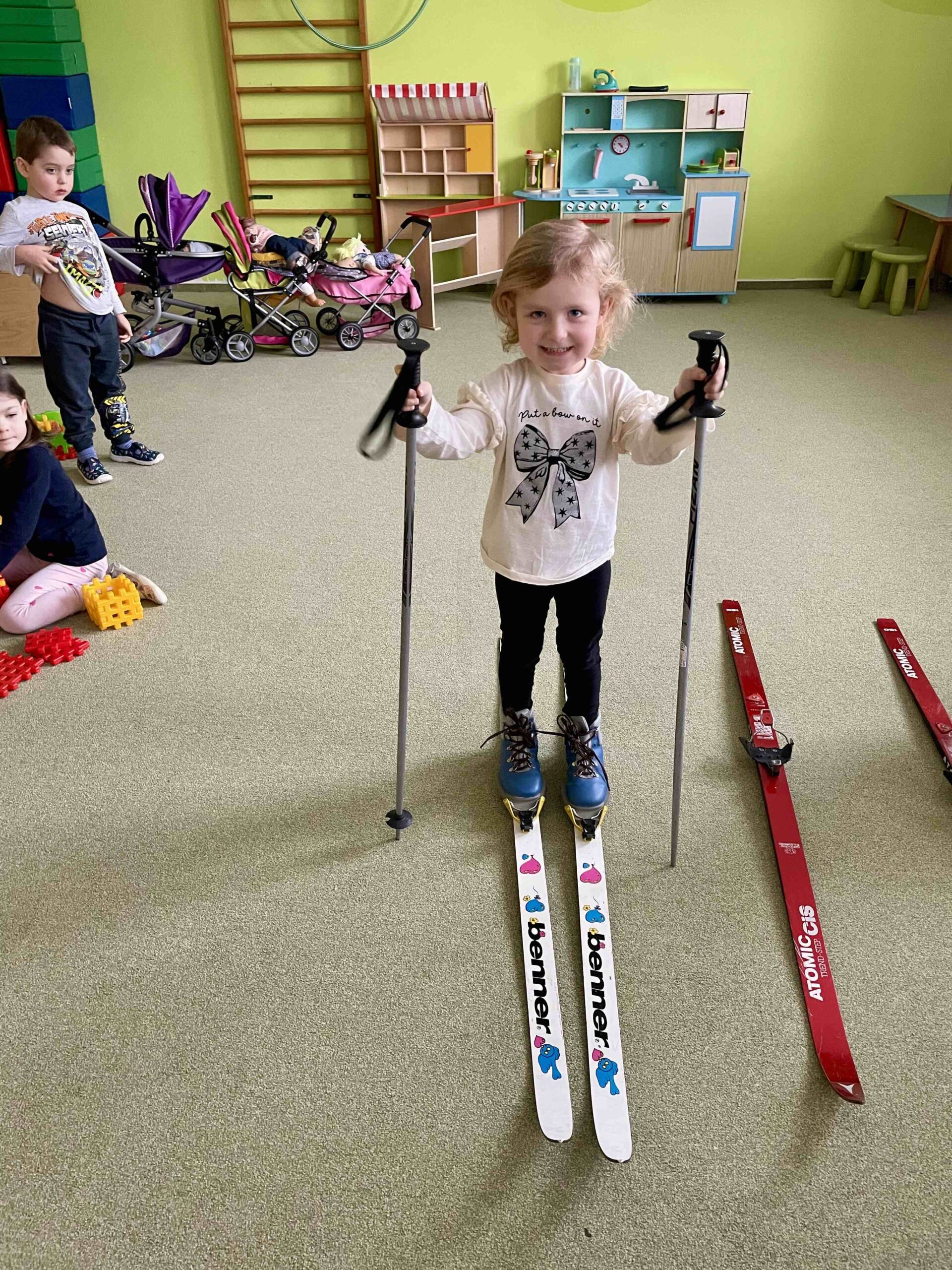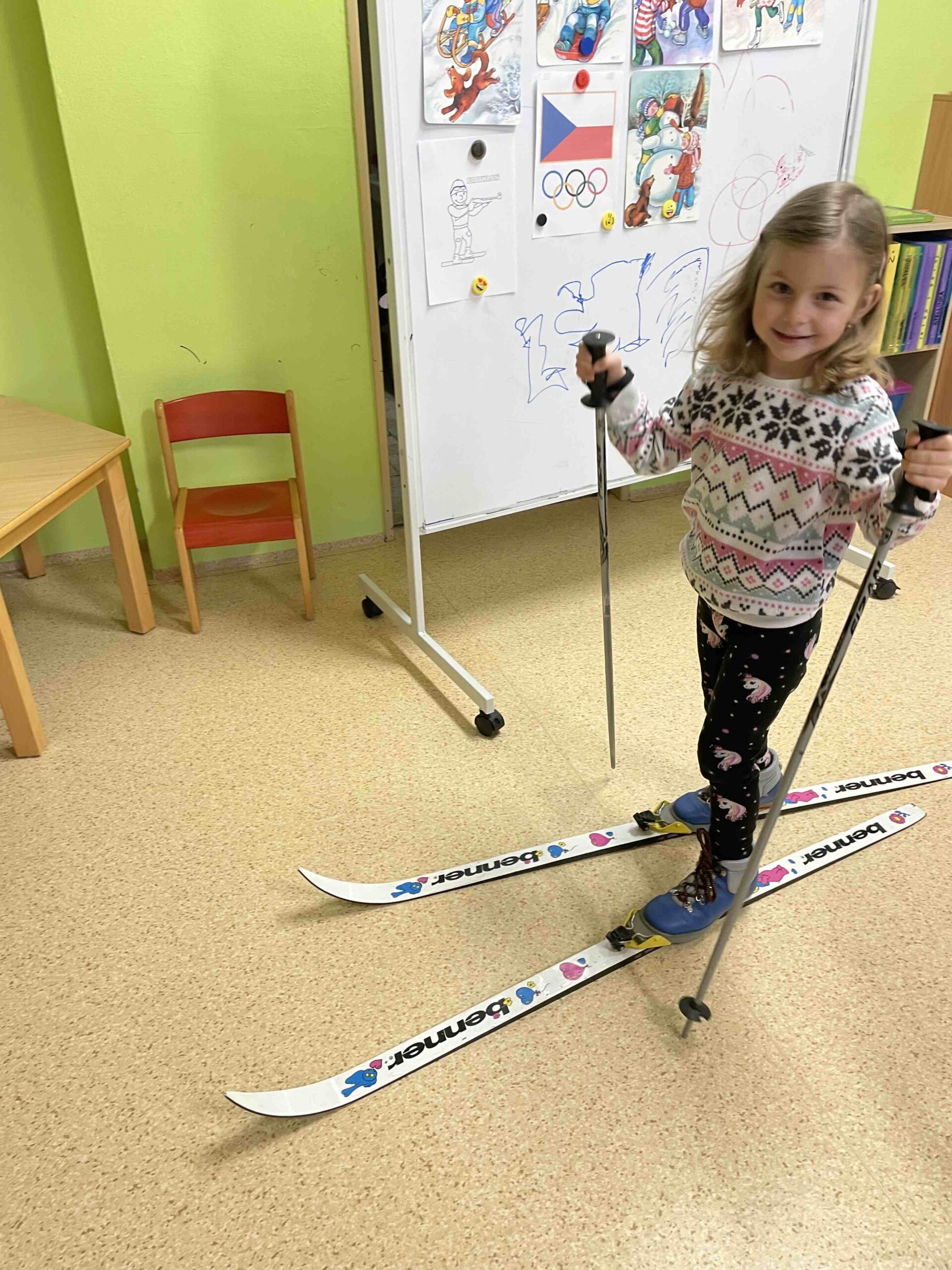 Olympiádou jsme žili i my v naší MŠ, a to doslova. Prakticky jsme si ve třídě vyzkoušeli snowboard, bruslení se šátky, běh na lyžích a jeden malý hokejista nám donesl ukázat hokejovou výstroj a i se nám do ní oblékl. Vrcholem bylo zapálení olympijského ohně venku na zahradě MŠ. Děti si vyrobily štafetu z papíru a postupně si předávaly a fandily si jako na opravdové olympiádě.