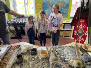24. dubna 2024 zažili žáci úžasné dopoledne se známým historikem Liborem Markem. Připravil projektový den nazvaný PRAVĚK. V první části zhlédli prezentaci s výkladem života lidí v jednotlivých etapách pravěku. Ve druhé části si prohlédli repliky známých archeologických nálezů, účastnili se módní přehlídky pravěkých dámských šperků, prohlédli si též zbraně a pracovní nástroje. V závěrečné části se soutěžilo ve výtvarné disciplíně. Nejlepší kreslíři získali vzácné mince – duhovky.