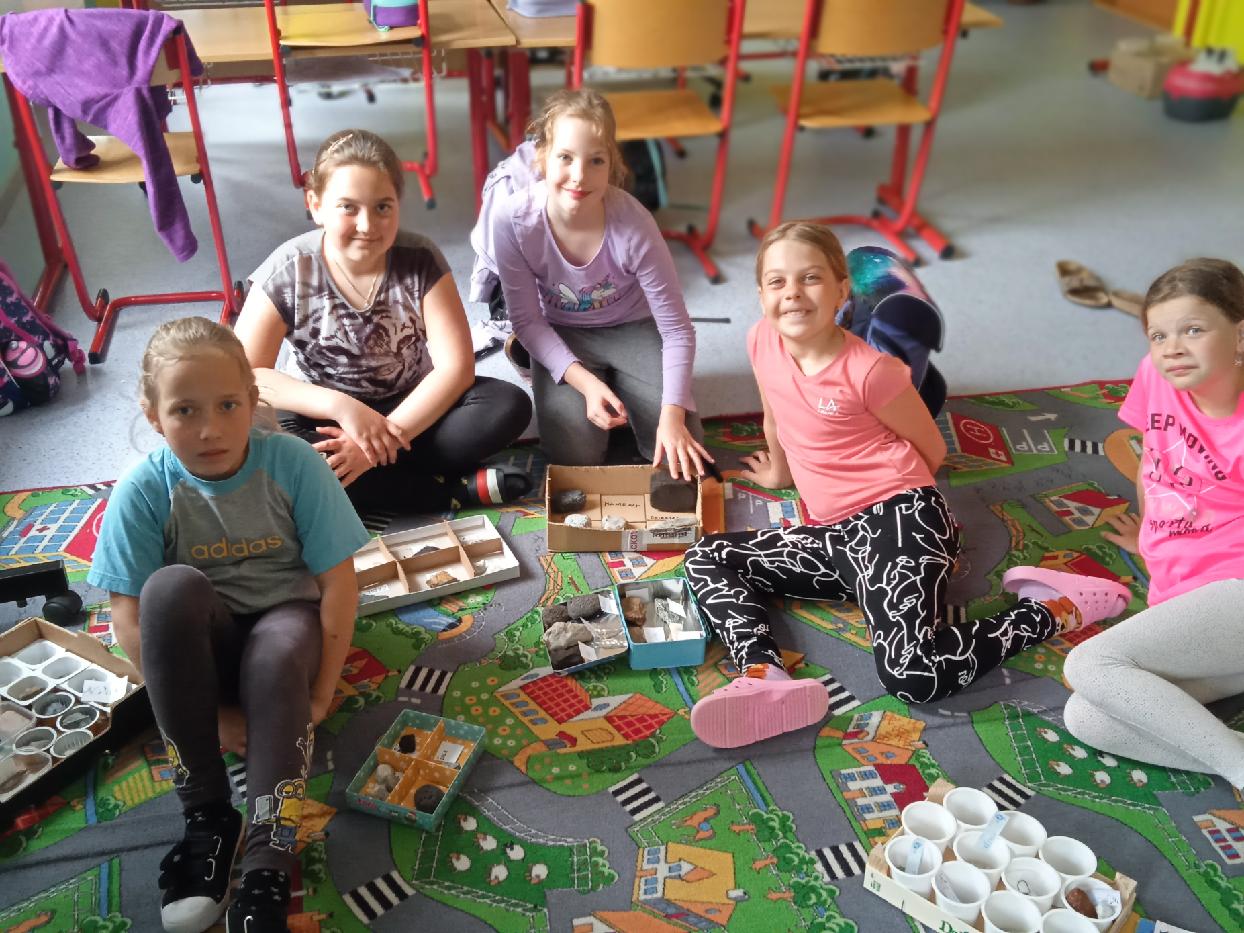 Při hodinách Prvouky se žákyně 3. ročníku dozvěděly mnoho nových informací o Neživé přírodě. Poté si každá vytvořila vlastní sbírku hornin a nerostů a pokusila určit jejich názvy.